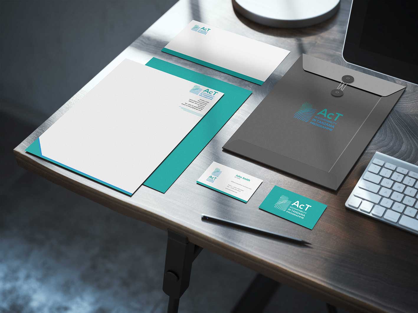 We were contracted to create the corporate ID and stationery for AcT. The whole idea revolved around the ripple effect that their work has on the community.
