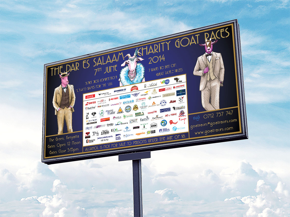 We offered our services on a sponsorship level to the Dar es Salaam Charity Goat Races for the first time back in 2008 and continued as the main design sponsor for 8 more years. It was so much fun, a lot of work, but fun to be a part of this incredible annual event. They do such great charity work and to have some part in that is really amazing.
